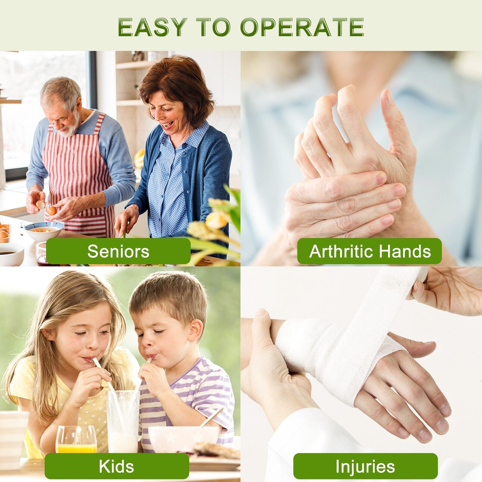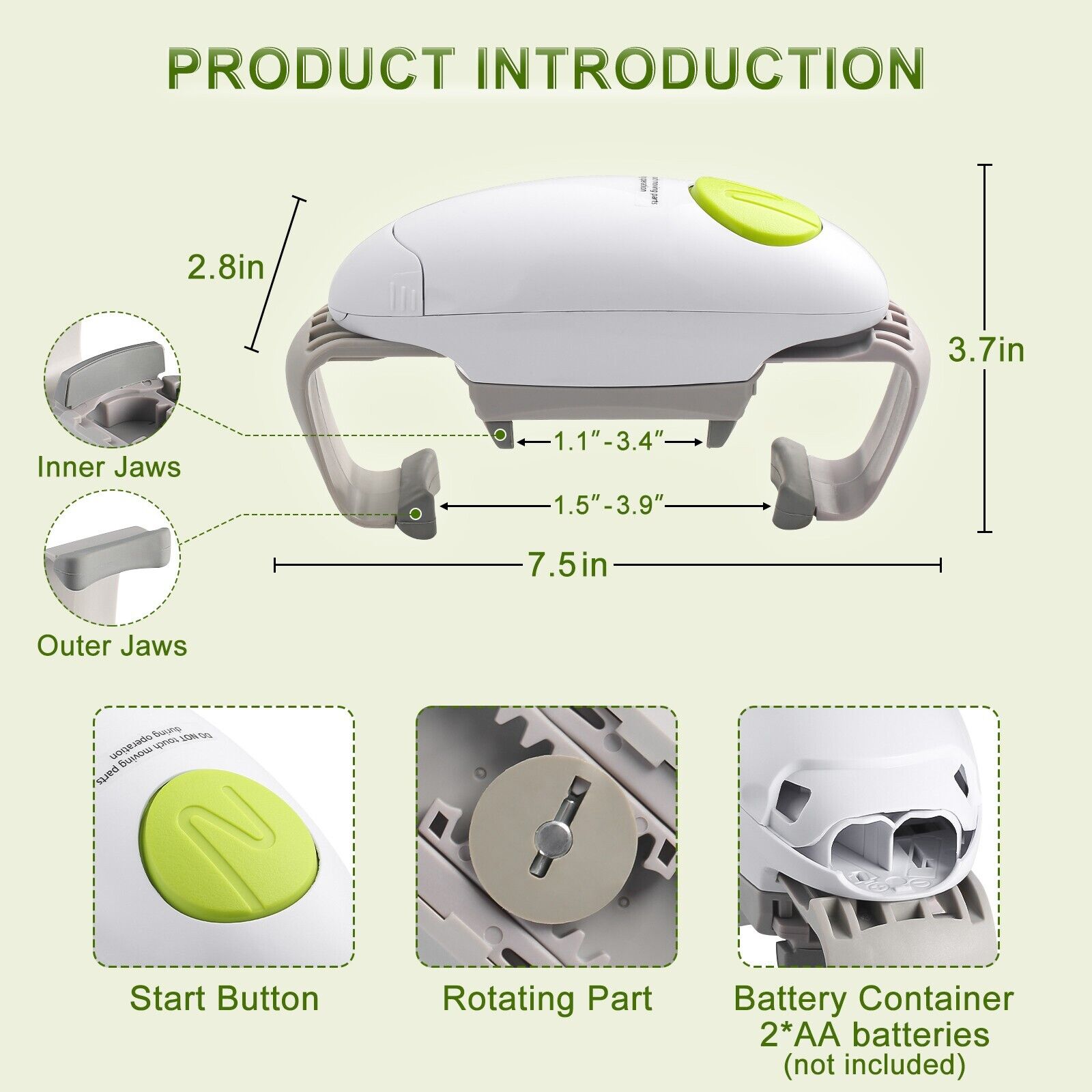 Robotic Electric Twist Jar Opener makes opening jars super easy. Simply place the Robotic Jar Opener on top of your jar, press the button and watch the outer jaws grasp the jar lid and twist it open. Works with almost any lid size of glass jars (will not work for plastic jars/lids). Designed with 2 jar twisting grips to suit lid diameters between 1.2"-3.5". Requires 2 AA batteries (not included).